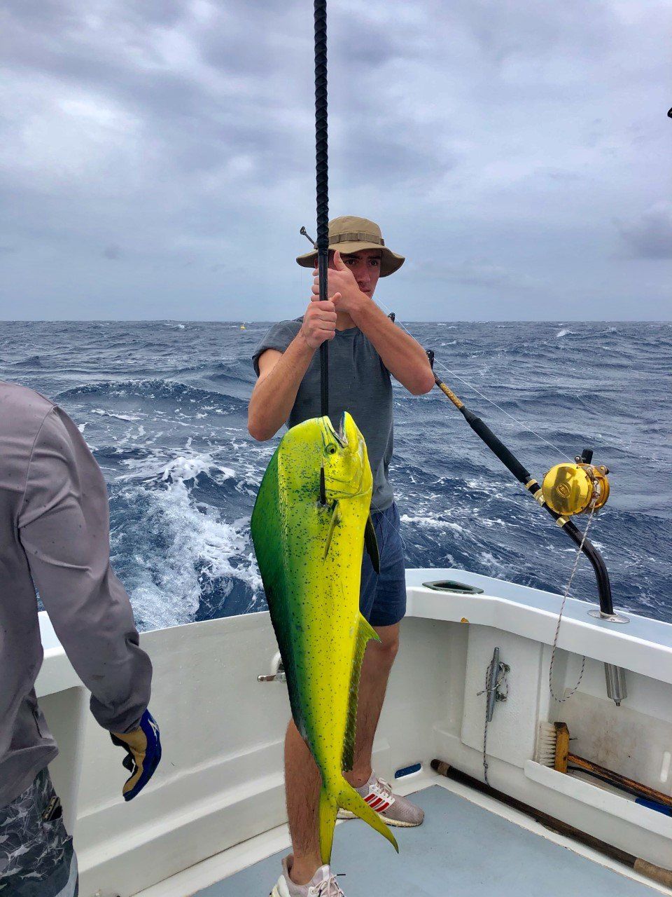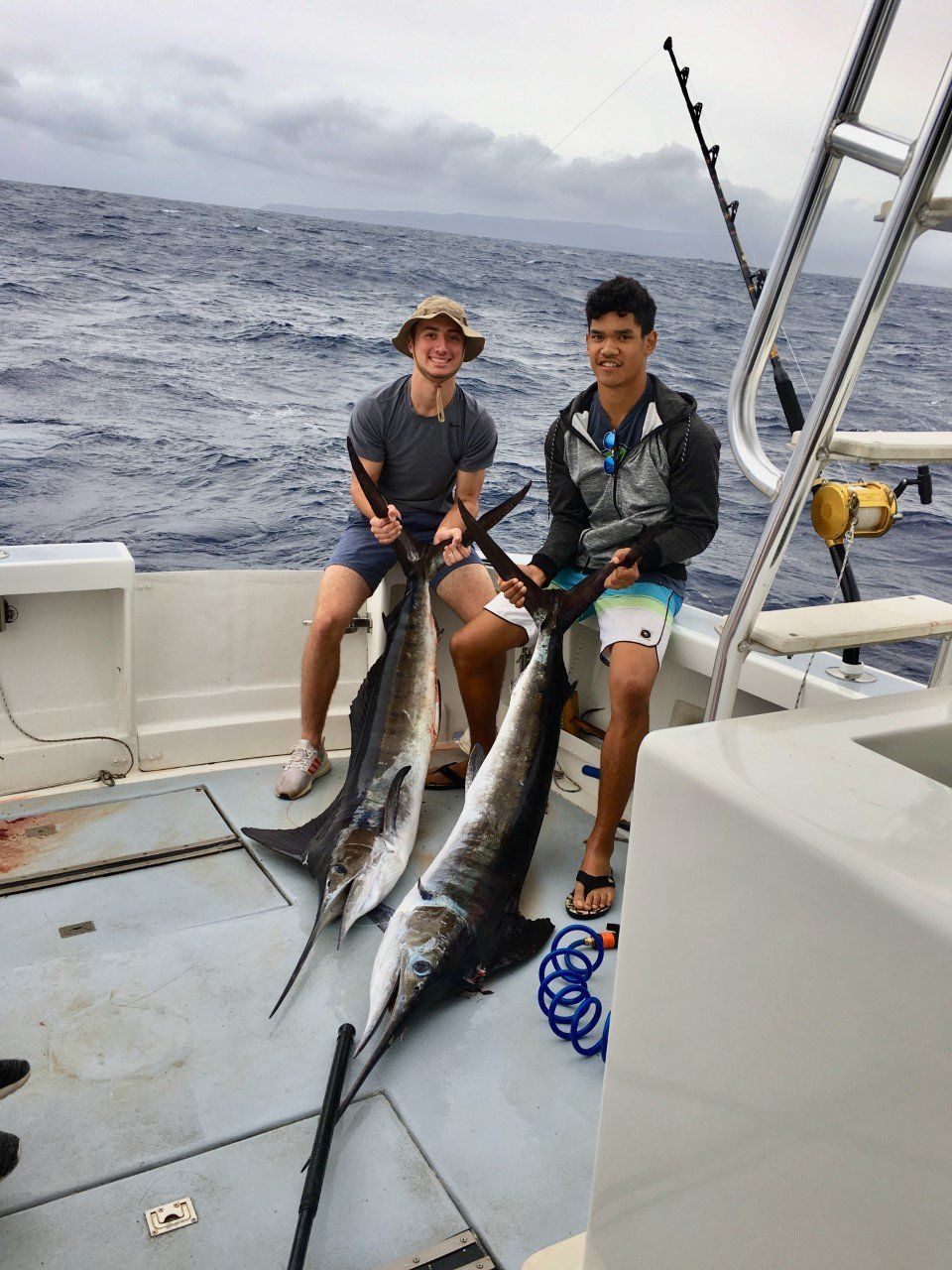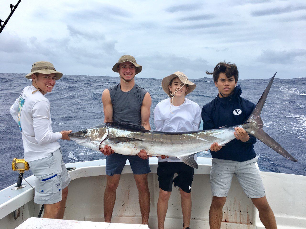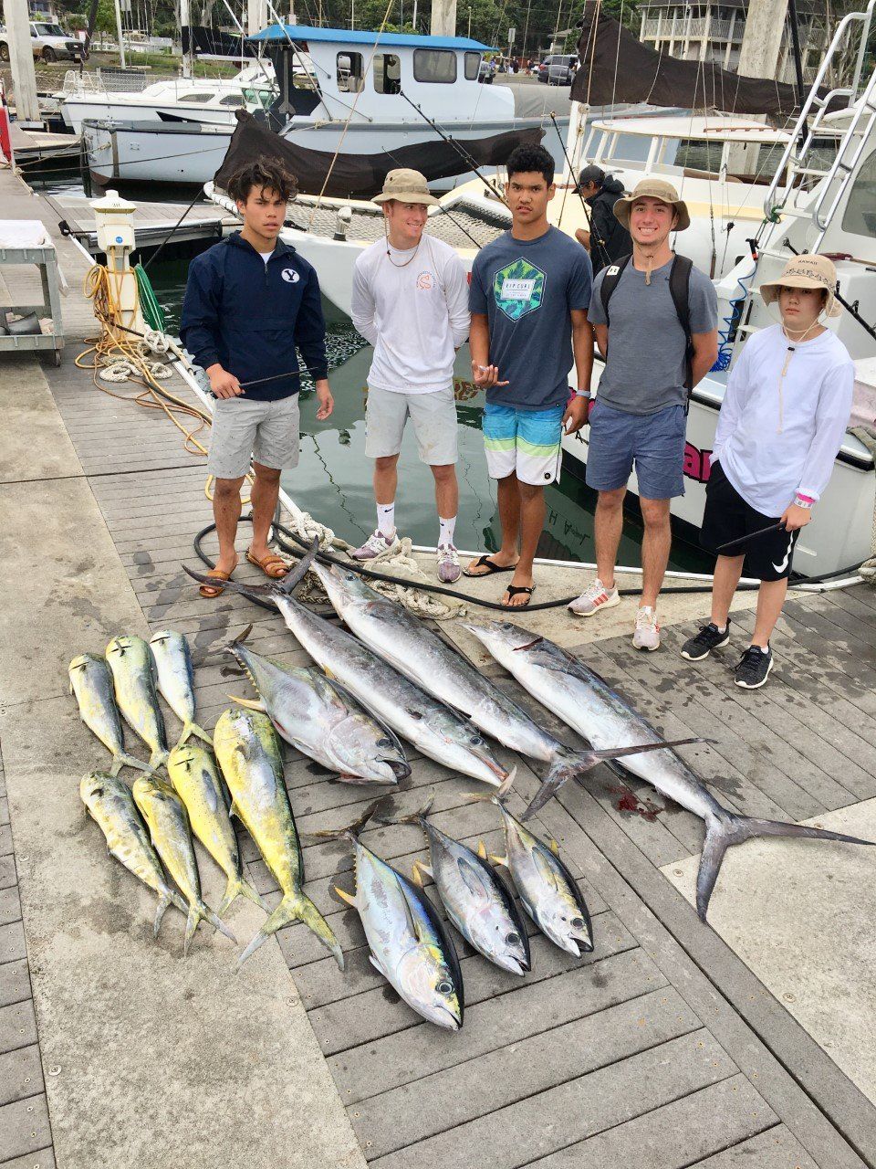 Greg took his sons and their friends fishing on a rough and windy day. The fish were biting! The action was non-stop! They caught 3 Striped marlin, 7 mahimahi, and 4 yellowfin.