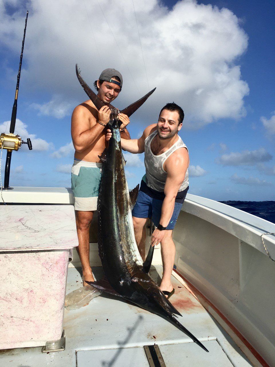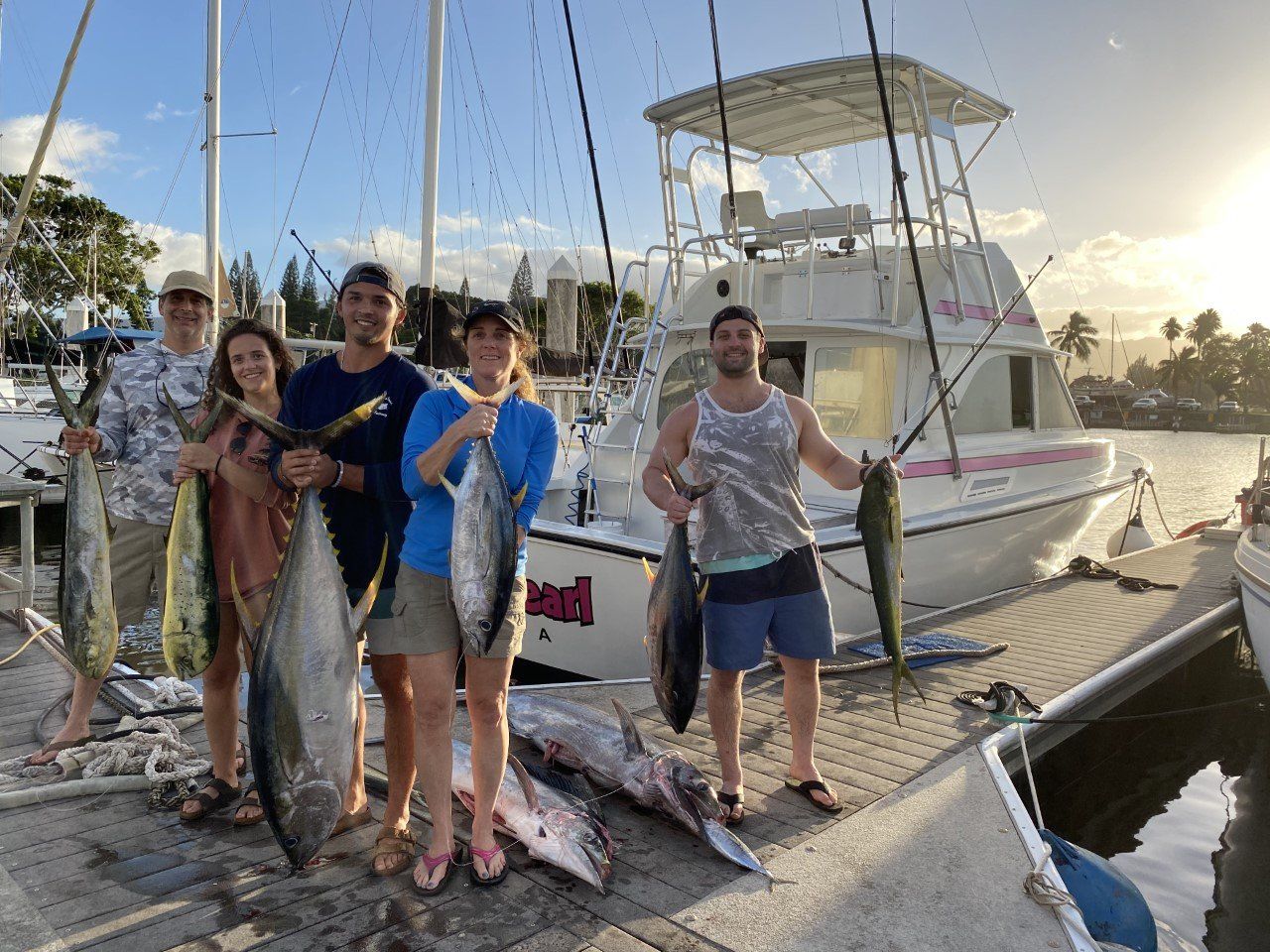 Aaron and Julie took their family fishing on the Pearl! They caught 1 Blue Marlin, 1 Striped Marlin, 5 Mahi-mahi, And 4 yellowfin (shibi).
