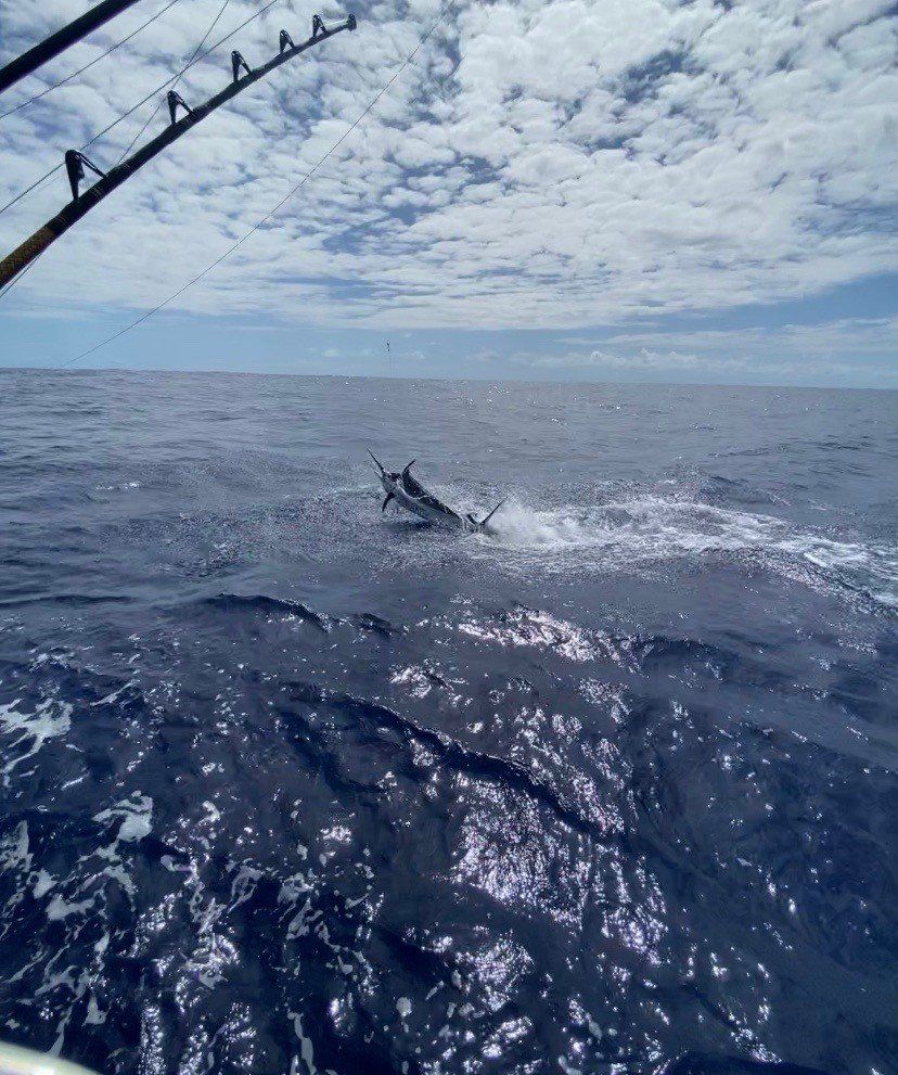 This was family day aboard the Pearl with Julie and Nika! We caught a frisky Blue Marlin!