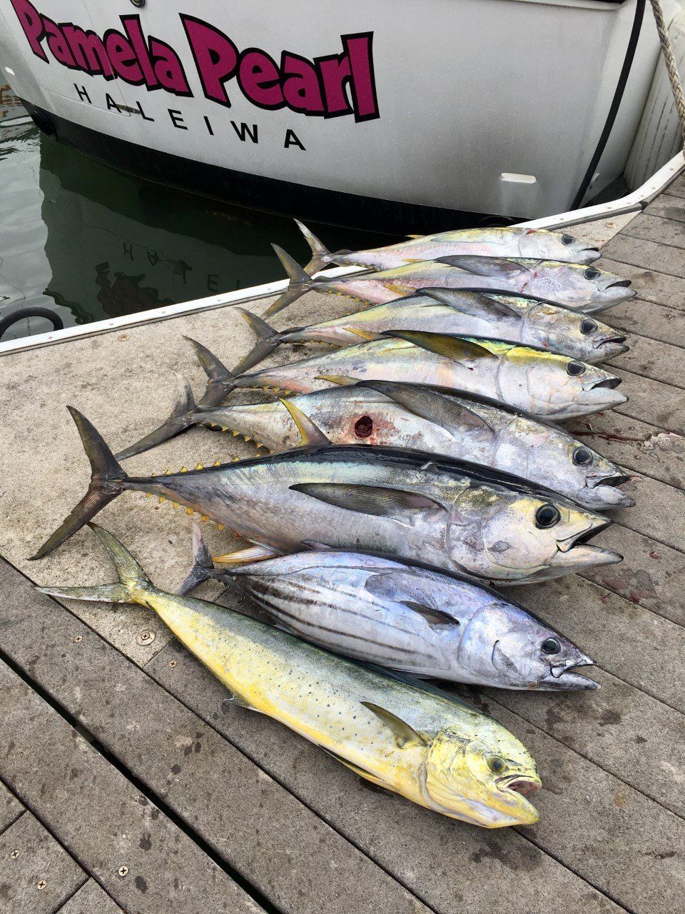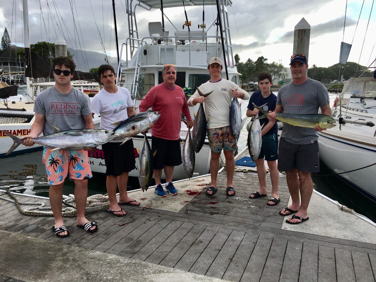 Greg and his family from Canada caught some Yellowfin (shibi), a skipjack (Aku), and a Mahi-mahi on the first day of 2020!