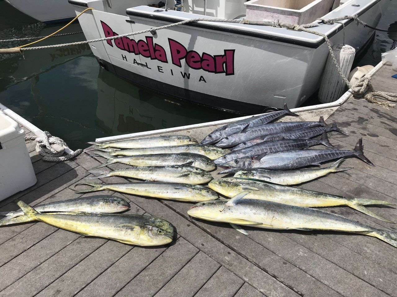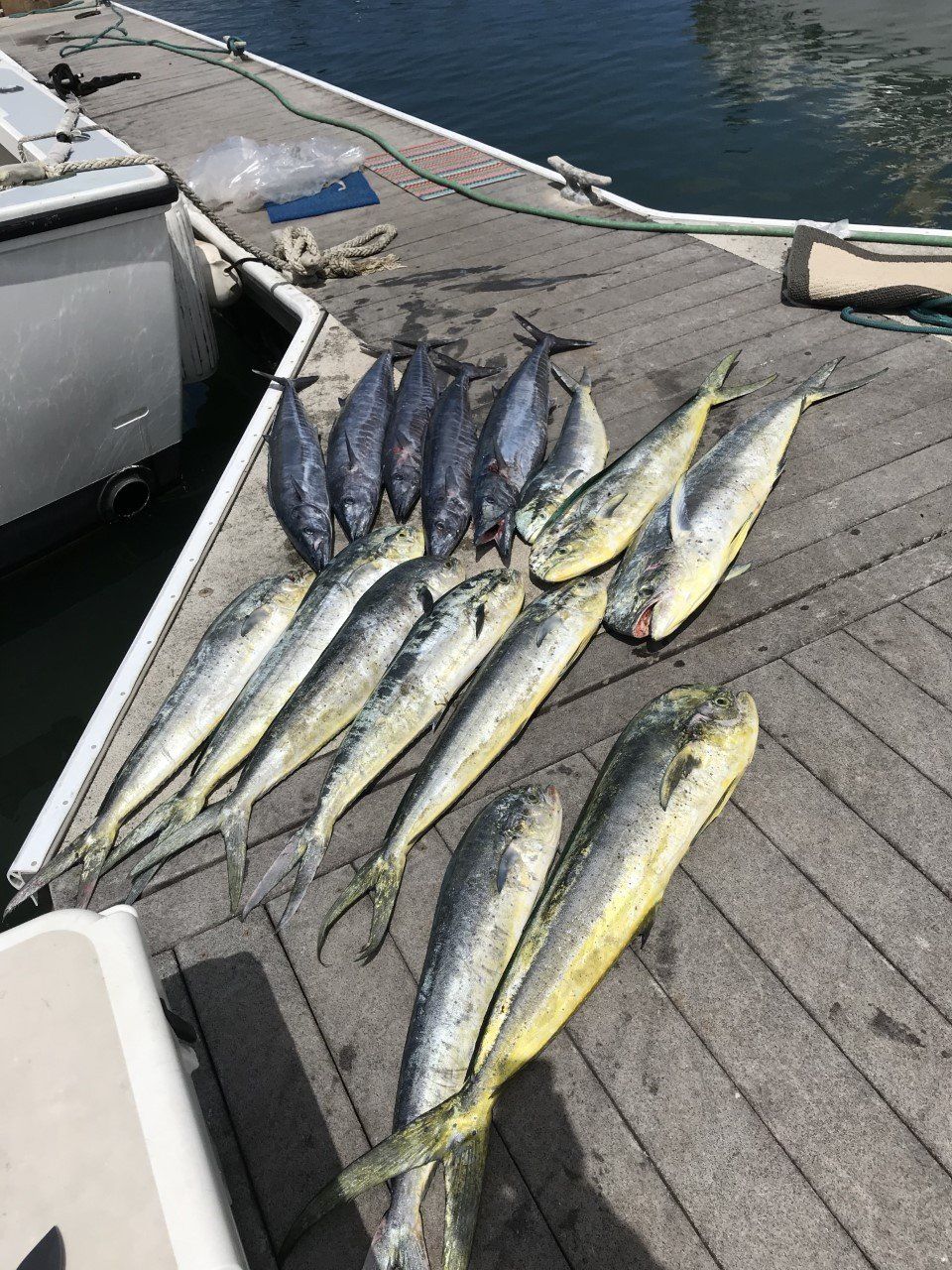 Captain Freed and Captain Rubin found some floating debris and caught 10 Mahi mahi, and 5 ono!