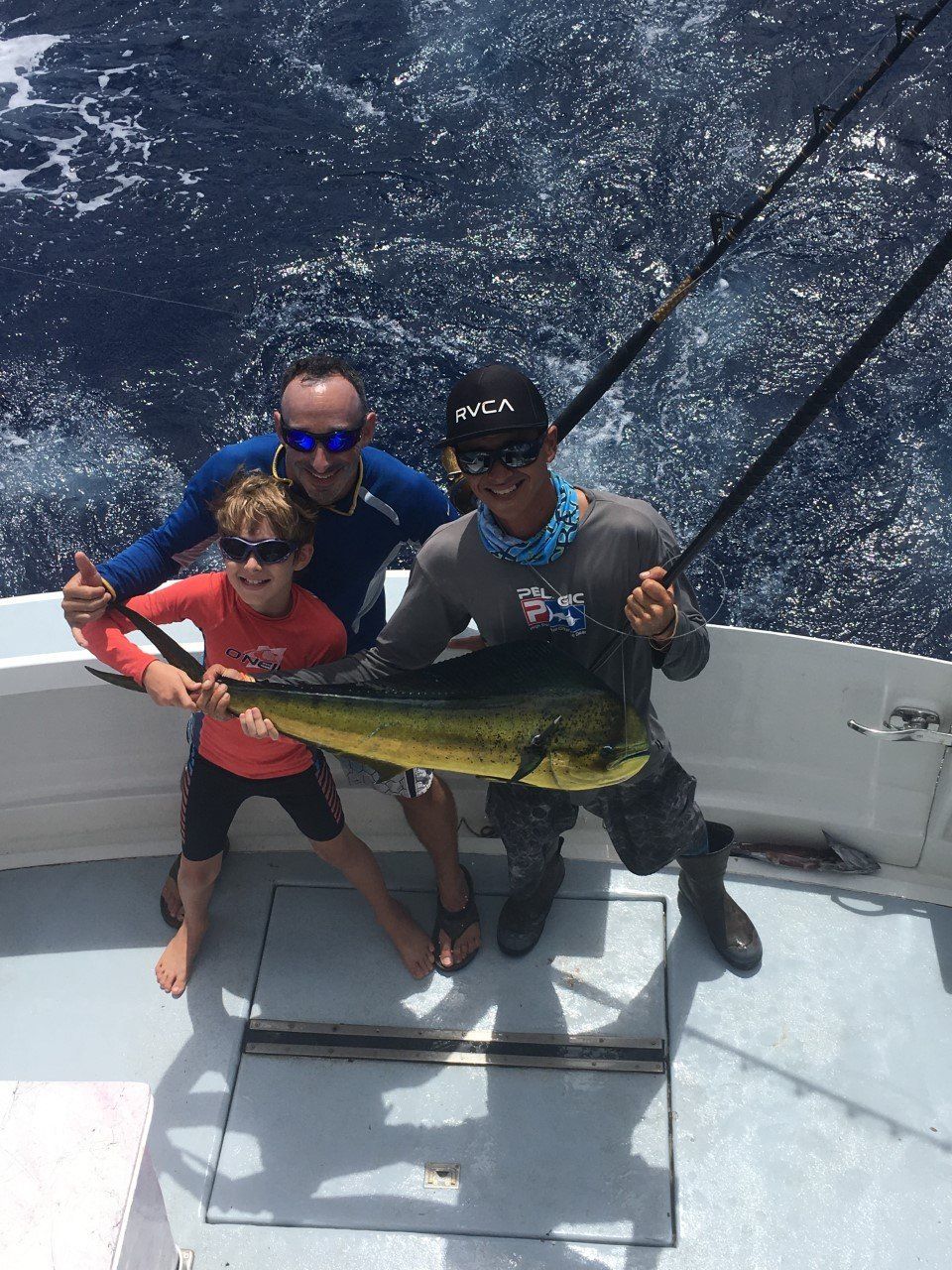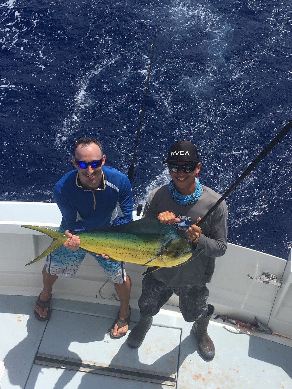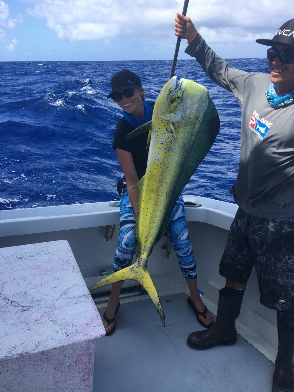 We had a friends and family day today with Pauly from Gray Taxidermy running the deck. Julie, Chuck, and his son reeled in 11 nice Mahi-mahi on sporty gear.