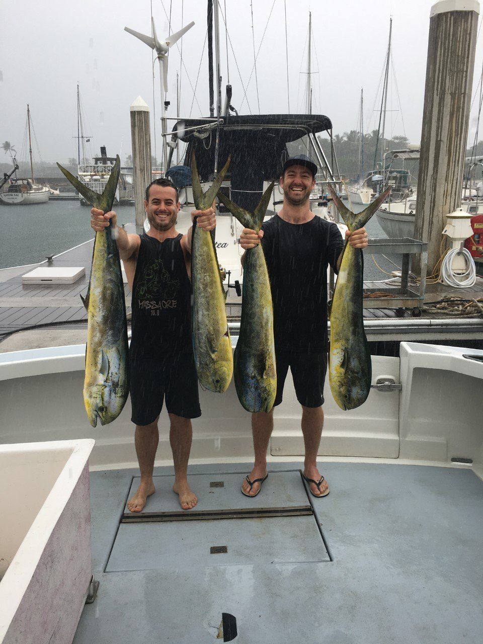 Andrew, Sam and friends got some action on the Pearl! They locked into a good sized blue marlin, and brought it all the way to the boat before it broke line. Some decent size Mahi mahi made it aboard.