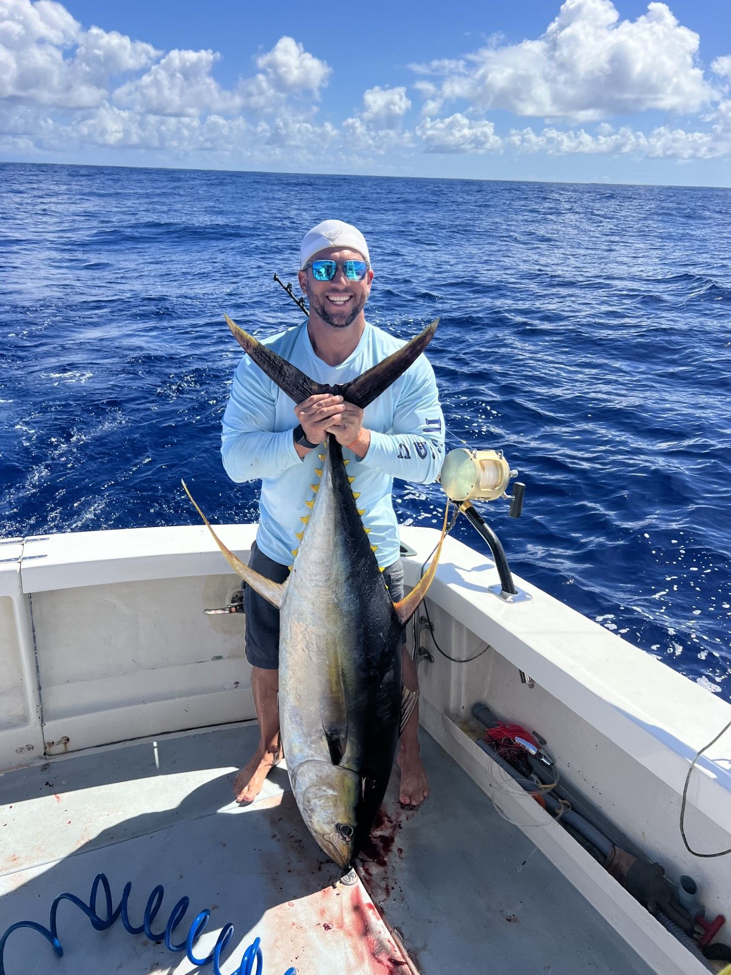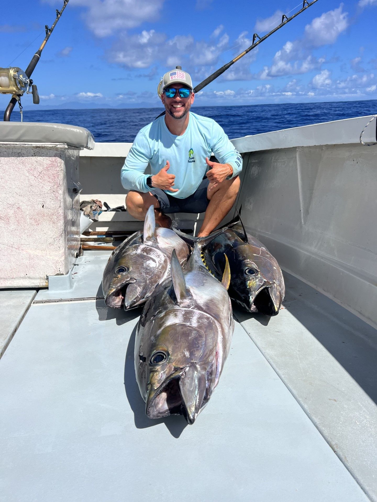 Joe Palach catches plenty of Mahi at home, and wanted to go for big tunas and Marlin. The greater the risk, the greater the reward. Capt. AJ went to the other side of the island to find them, and put Joe and his wife on a nice load of Ahis.