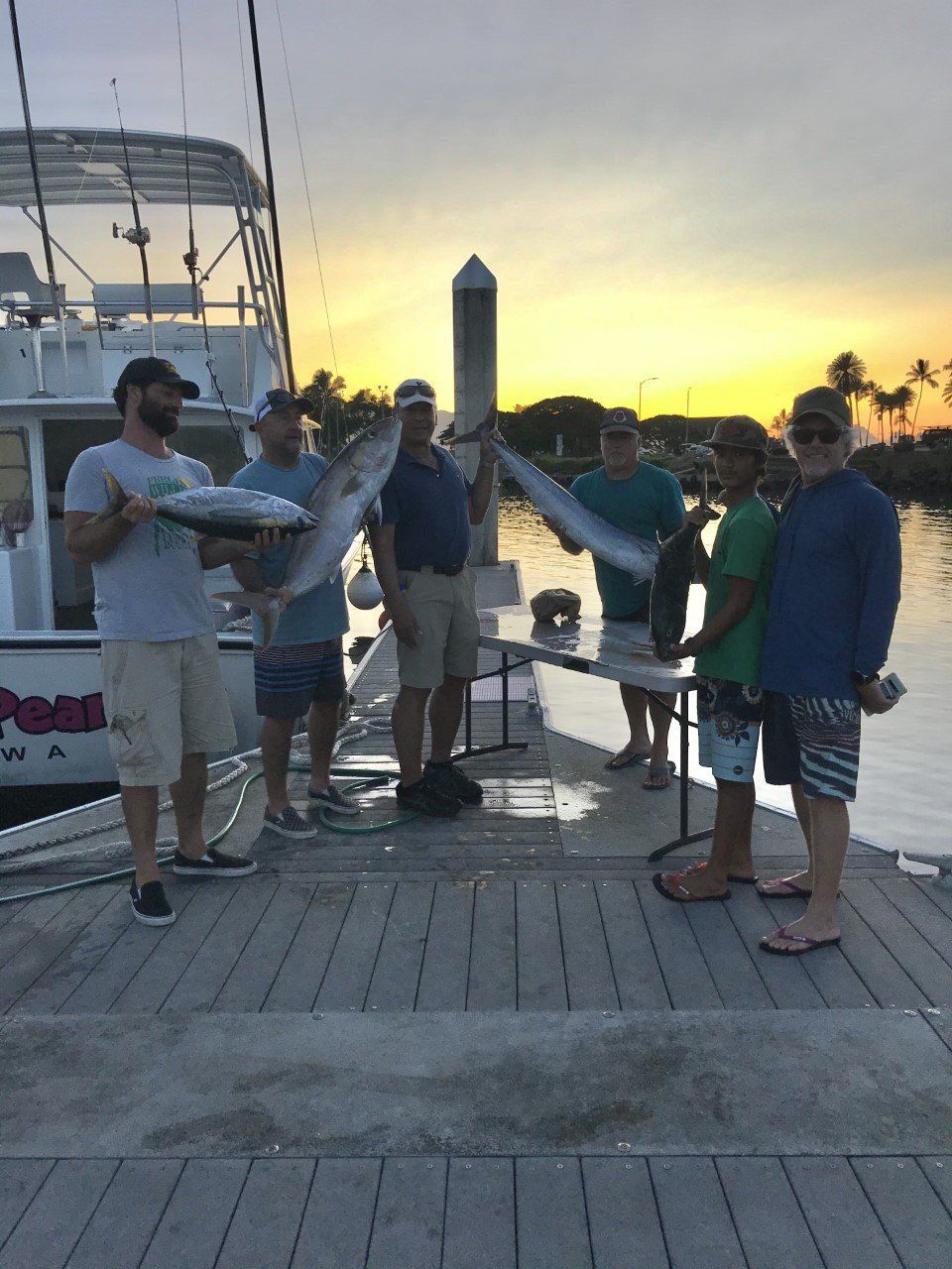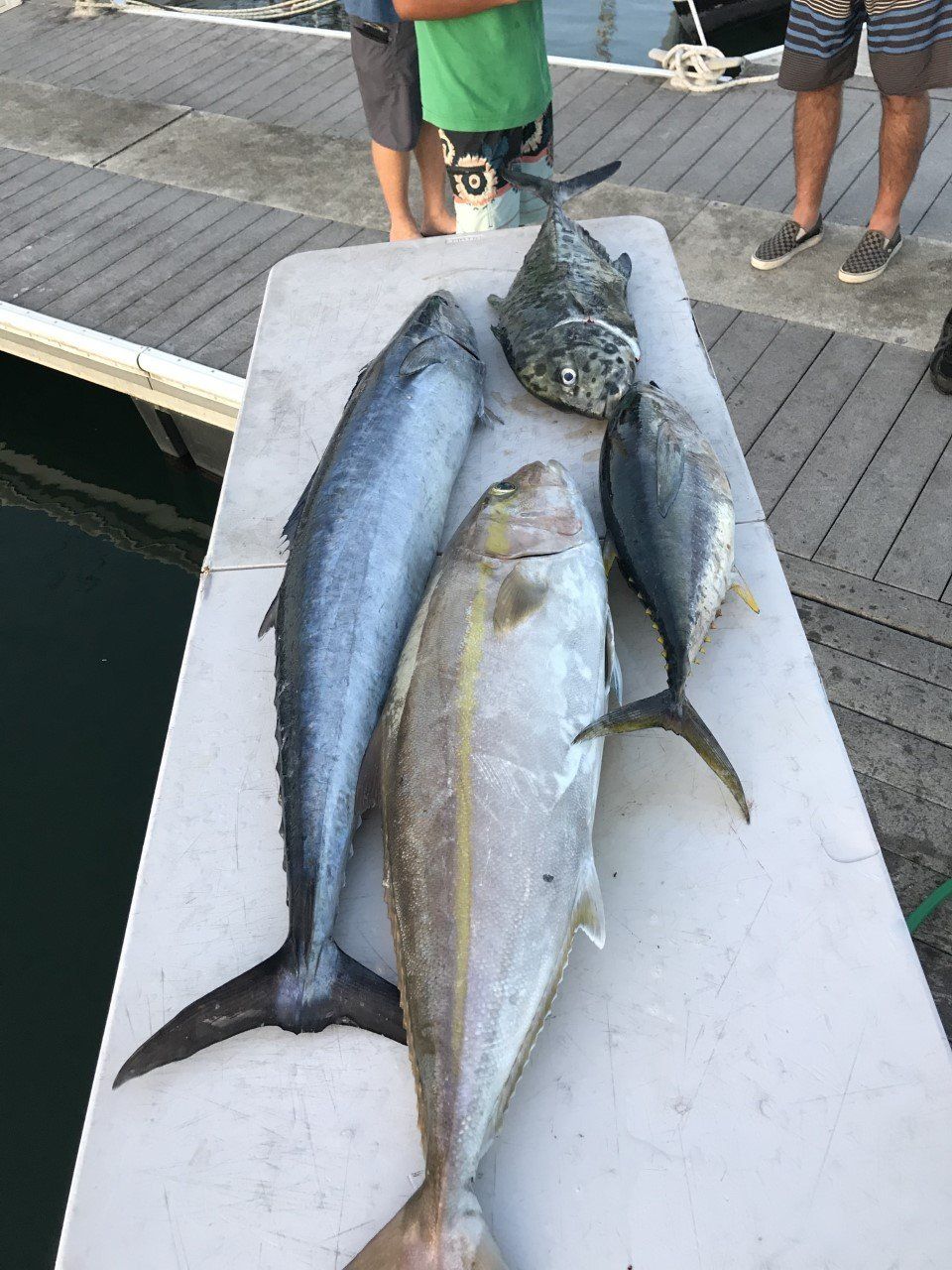 The Denzer brothers and friends caught a mixed bag of fish. They caught an Ono, Kahala (Amberjack), Ulua, and a Shibi (yellowfin)